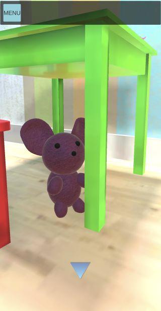 前の部屋のテーブルの下のネズミのぬいぐるみを調べる。