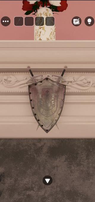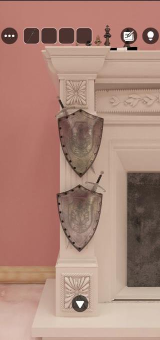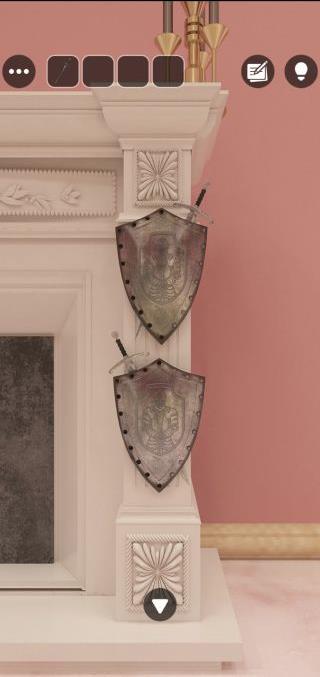 奥の暖炉の盾を拡大して、剣の配置を確認していく。