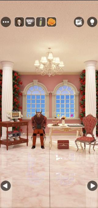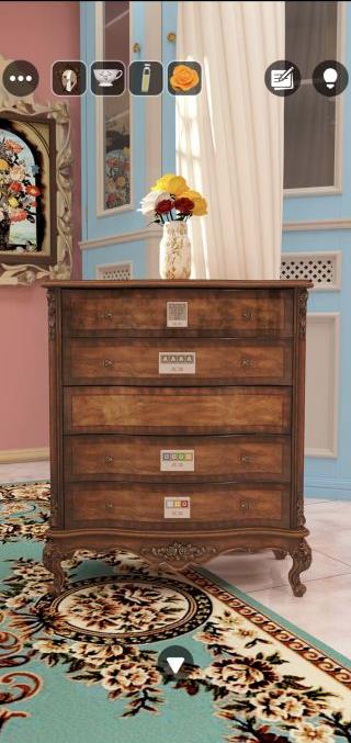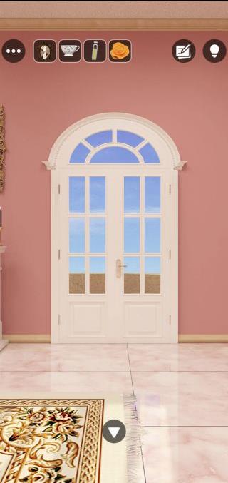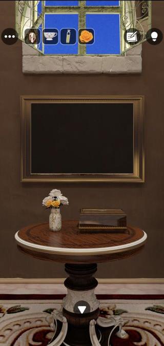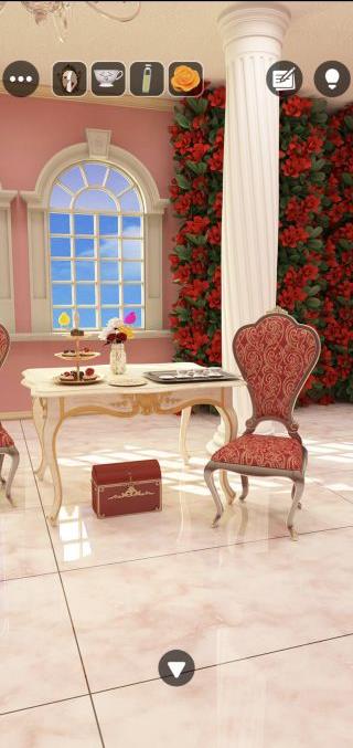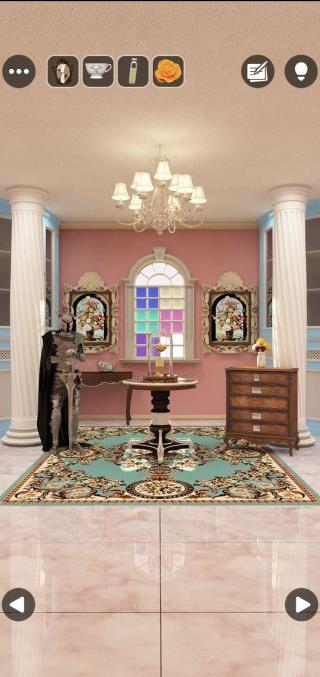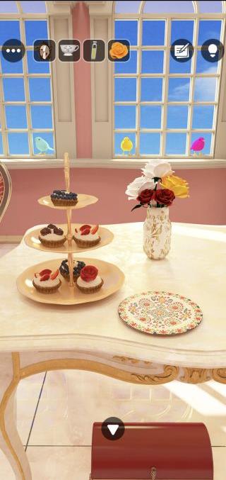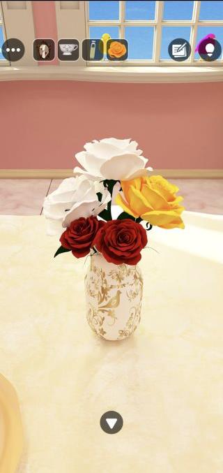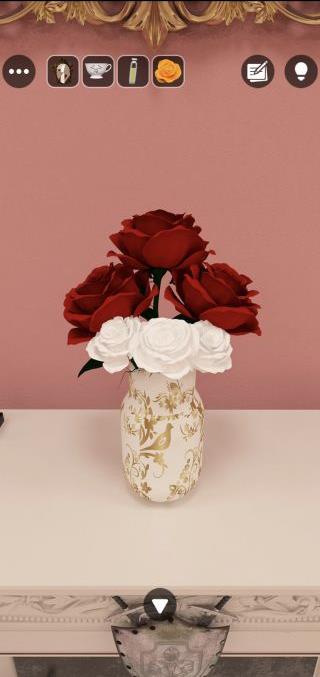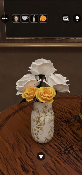 テーブルの上の花瓶を拡大して、『白2、赤2、黄1』を確認。