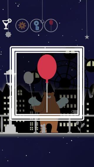 「風船」を入手して、右のビルの窓に鍵穴があるのを確認。