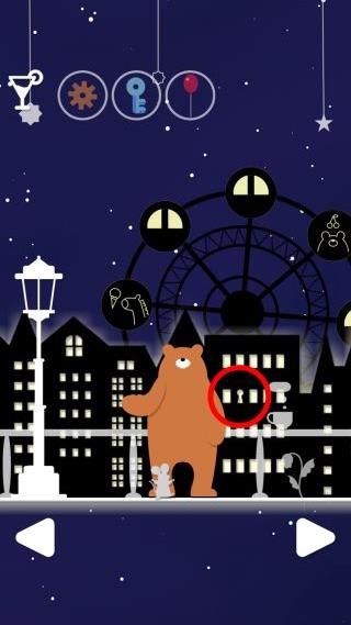 左に移動して、奥の観覧車のゴンドラの中に『クマとチェリー』があるのを確認。