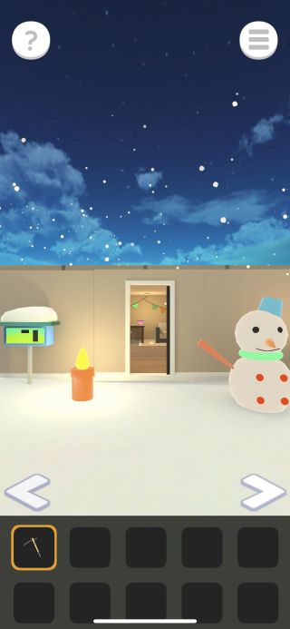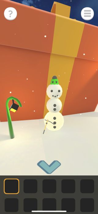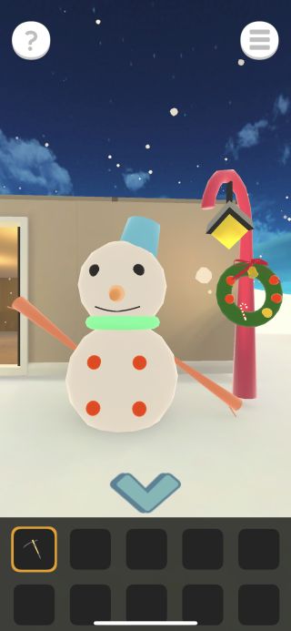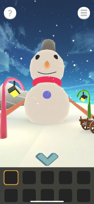 雪だるまを拡大して、ボタンの数と両手の向きを確認。