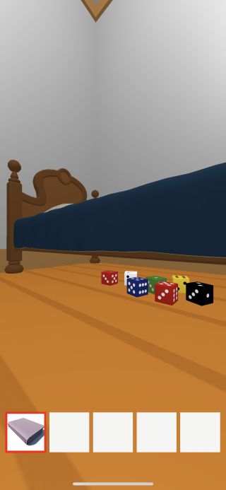 右のベッドの下を調べて、サイコロが7個あるのを確認。