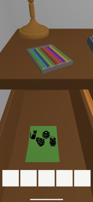 引き出しの中の『猫、チーズ、サイコロ、時計』を確認。