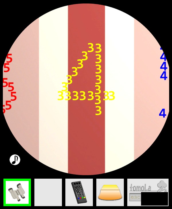 壁の数字を拡大して、『赤=5、黄=3、青=4』を確認。