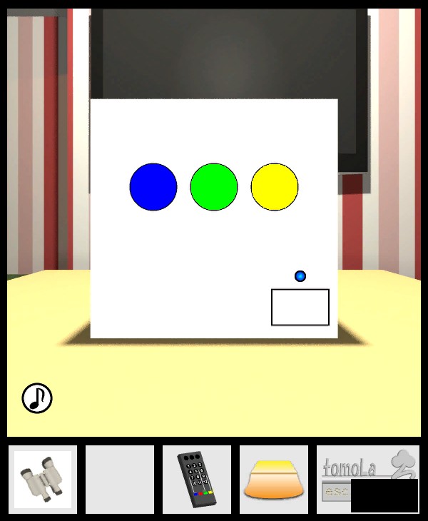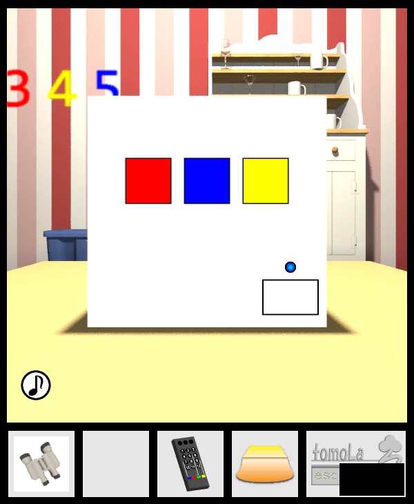 こたつの上の箱を拡大して、3種類のグラスの数に色を当てはめて『赤青黄』に合わせる。