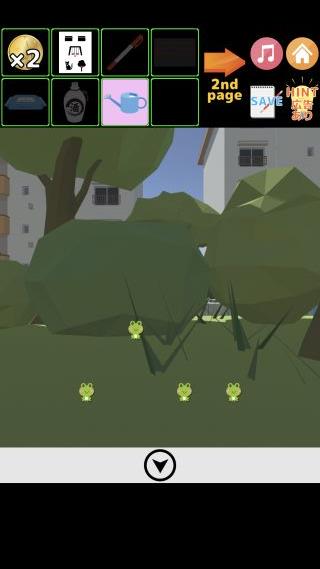 カエルがジャンプする順番が、左から『2、3、1、4、3番目』なのを確認。