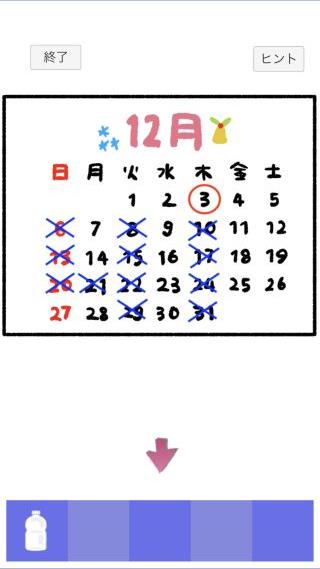 壁のカレンダーを拡大して、『赤丸=3』を確認。