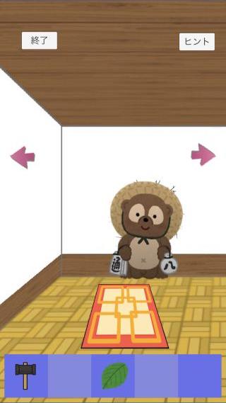 左に移動して、タヌキの置物に「葉っぱ」を使う。