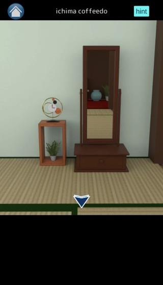左奥を拡大して、『スタンドライト、植木鉢、壺、椅子』を確認。