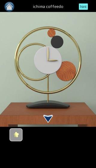 上の時計を拡大して、円形の大きい順で『金、金、時計、木、黒、木』なのを確認。