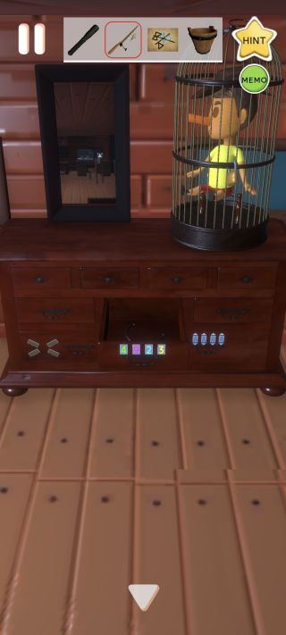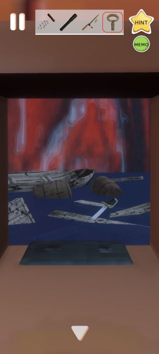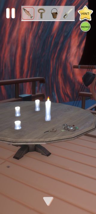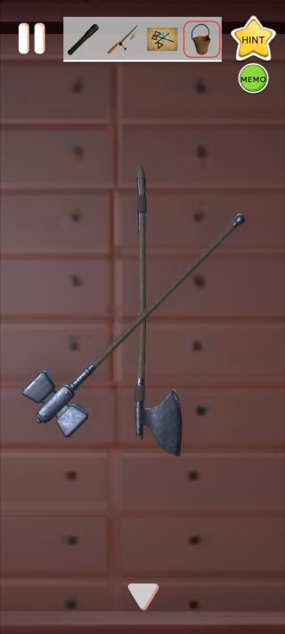 「メモ」をヒントに、猫の向きに合わせて武器の角度を合わせる。