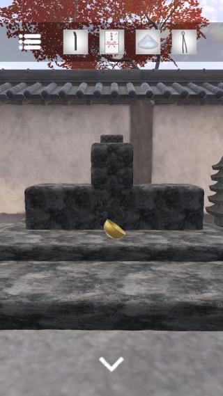 脱出ゲーム 寺うさ -日本の寺院 無料 3.9 評価する 送信する みずのひかる 攻略その9 「ほうき」を使う。 器を動かす。 「お線香の灰」を入れて、「火の付いたお線香」を使う。 右に移動して、扉を拡大。 「チェーンカッター」で鎖を切る。 奥に進む。 賽銭箱に「お年玉」を入れて、クリア。 攻略その1 攻略その2 攻略その3 攻略その4 攻略その5 攻略その6 攻略その7 攻略その8 攻略その9
