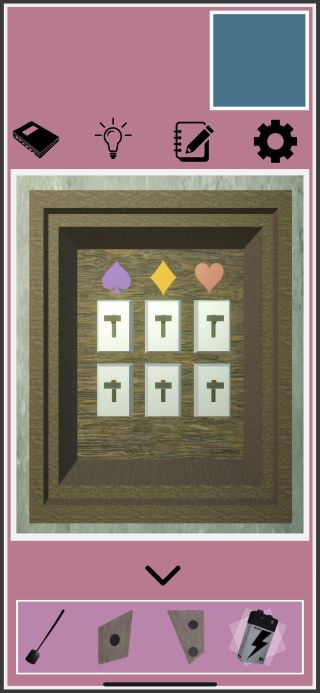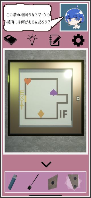 左の地図を拡大して、マークの位置にあった図形が『スペード=上下、ダイヤ=下上、ハート=下上』を確認。