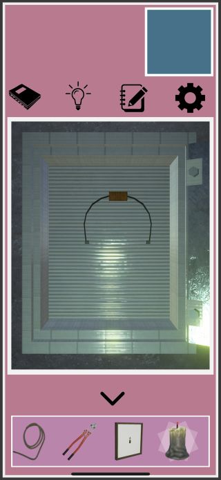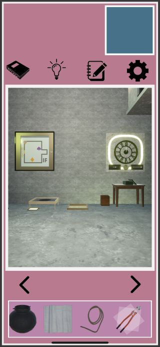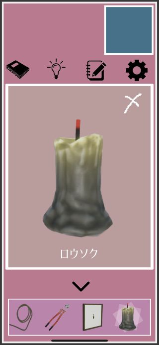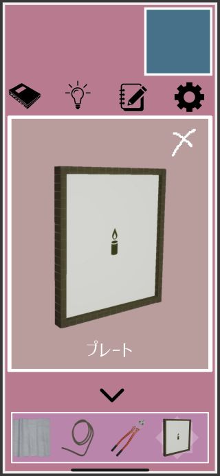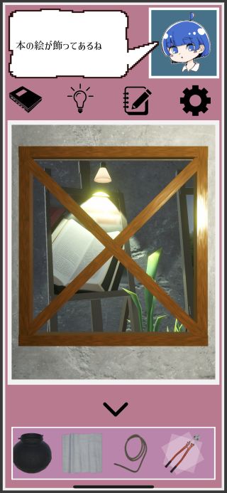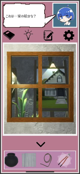 窓枠の形と奥の絵『本の絵=×、家の絵=+』を確認。