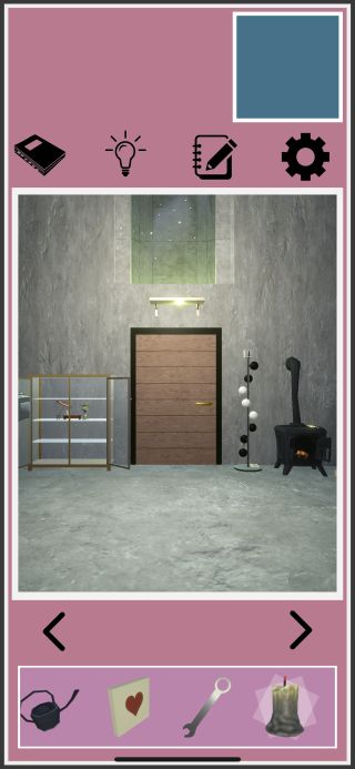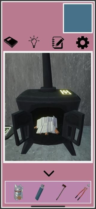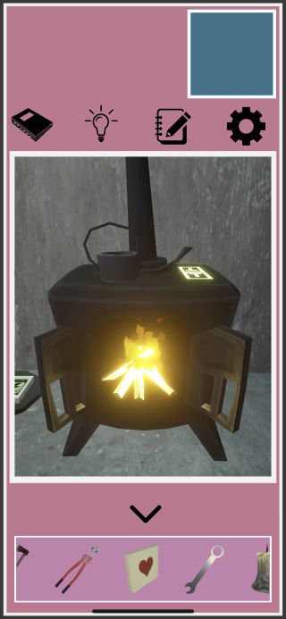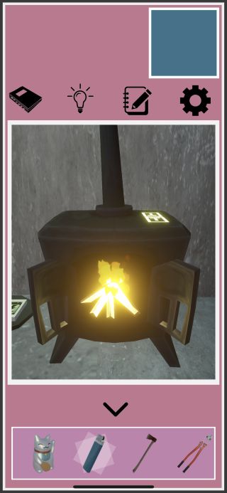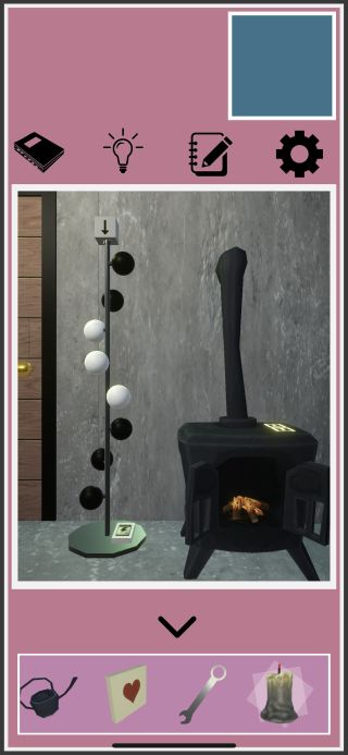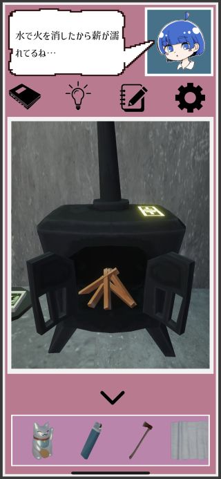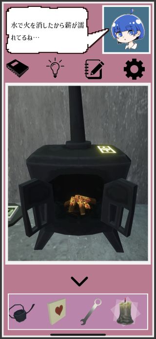 「ライター」で火をつけて、ストーブの上に「ジョウロ」を置く。