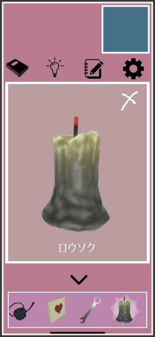 「ロウソク」を入れて、「溶けたロウ入りジョウロ」を入手。