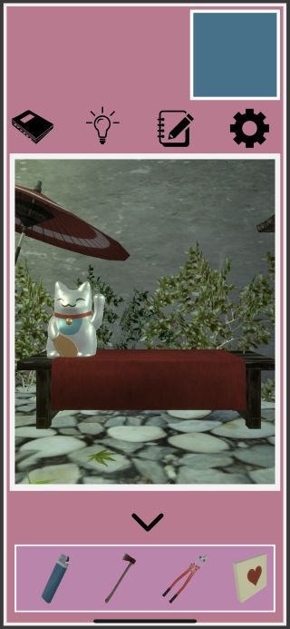 「招き猫」を置いて左に動かして、右の灯籠を拡大。