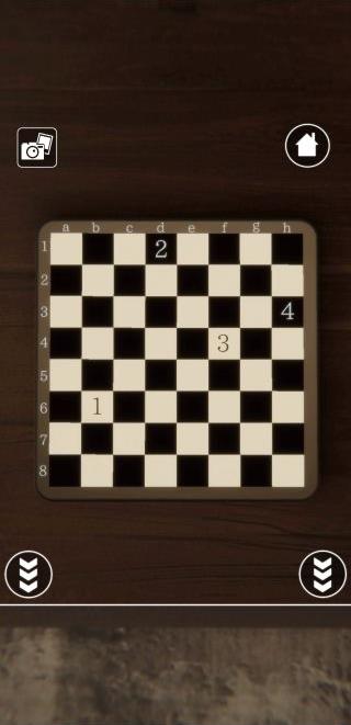 テーブルの上のチャス盤を拡大して、数字の順で『b6、d1、f4、h3』を確認。
