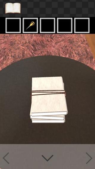 テーブルの上を拡大して、「ハサミ」でヒモを切る。