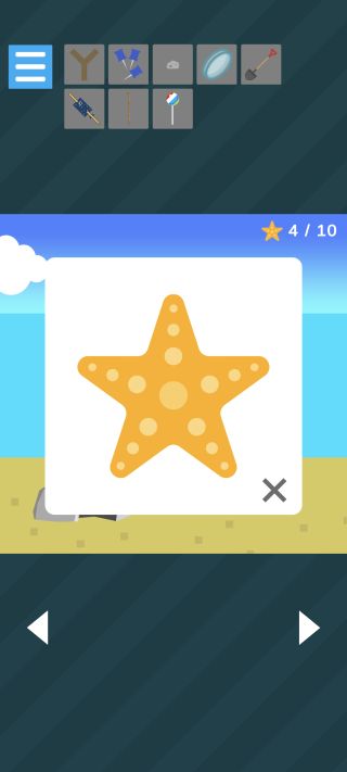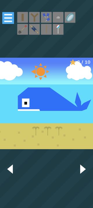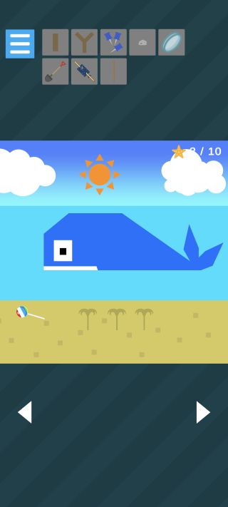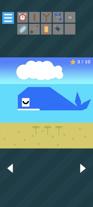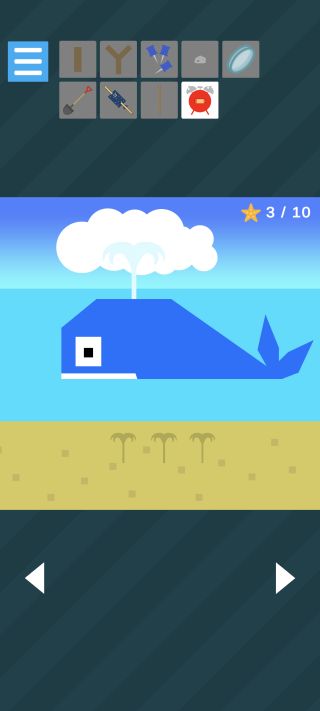 砂浜のヒントでクジラを3回タップで潮吹きさせる。