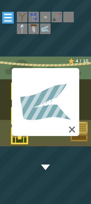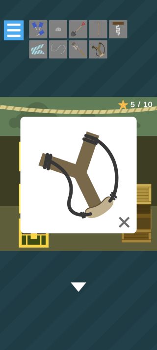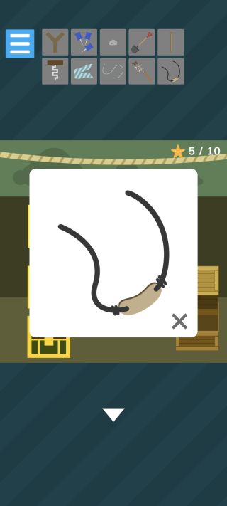 「ゴム」を取り付けて、「石」を組み合わせて「パチンコ」を入手。