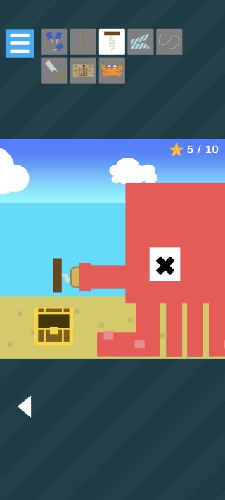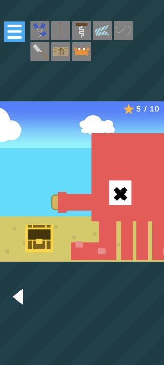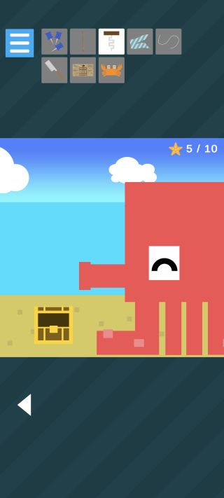 右に4回移動して、タコの口に「大きいコルク抜き」を使う。