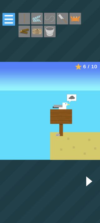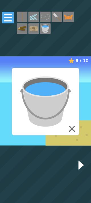 海に「バケツ」を使って水を入れて、右に8回移動。