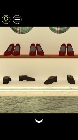 「車輪」を取り付けて、ショーウインドウの靴の向き『上、右、左下、下』を確認。