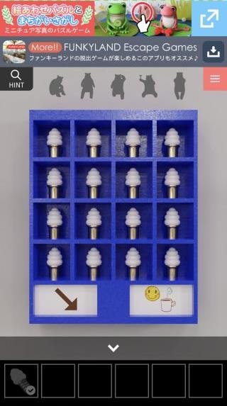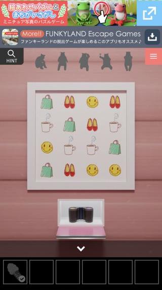 奥の壁の『フェイスマークとコーヒー』の位置を確認。