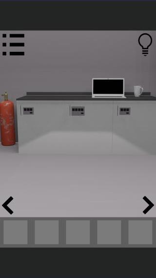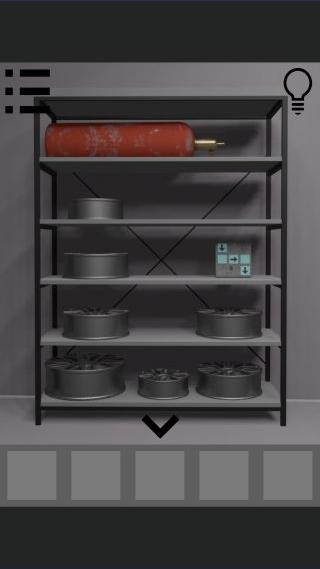 右に2回移動して、棚の消火器の向き『─』を確認。