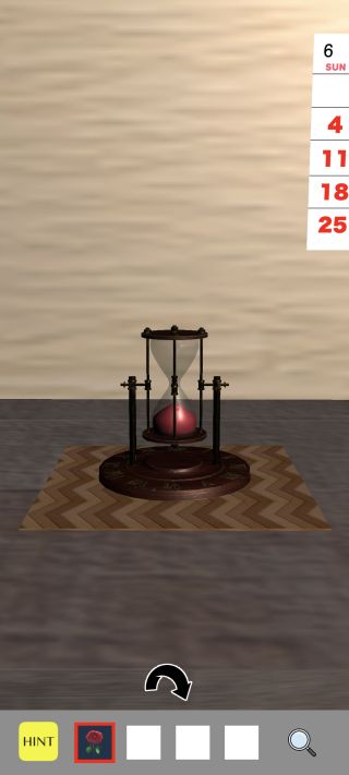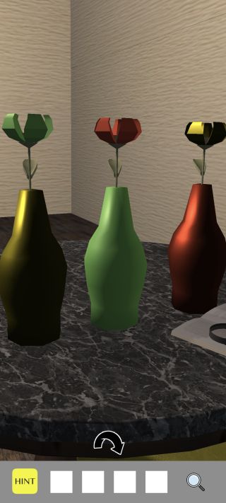 前の部屋に戻って、テーブルの上の花と花瓶の色を確認。