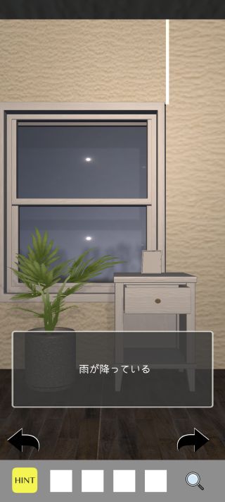 反対側に移動して、窓の外を調べて雨が降っているのを確認。