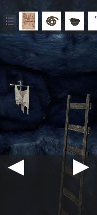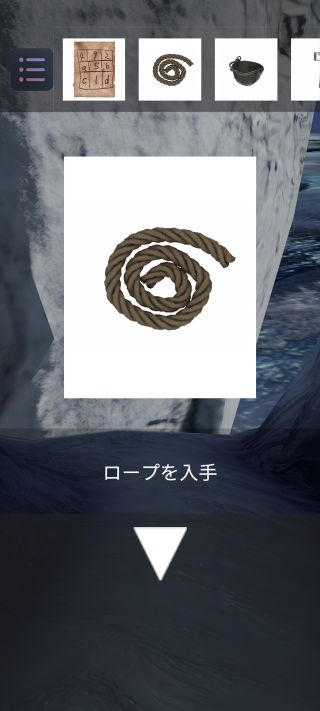 左に移動して、「ナイフ」を使って「ロープ」を入手。