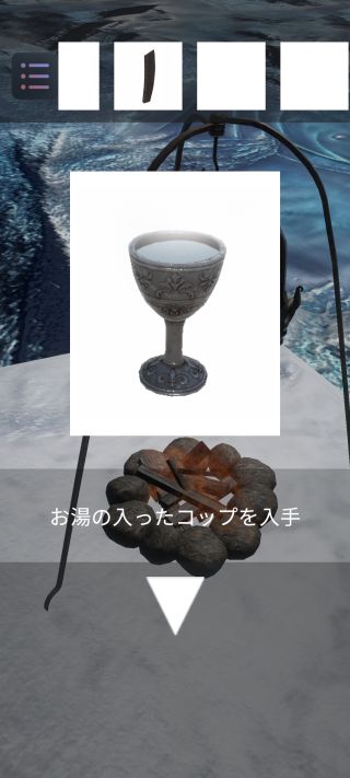 「お湯の入ったコップ」を入手して、洞窟の中へ。