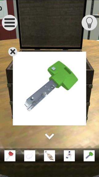 「カプセル」に「ハンマー」を使って、「緑のカギ」を入手。