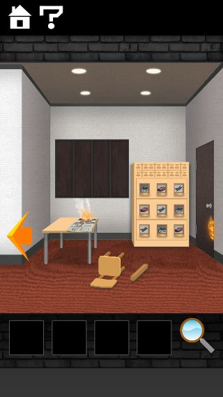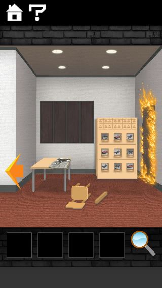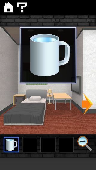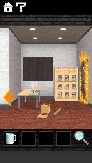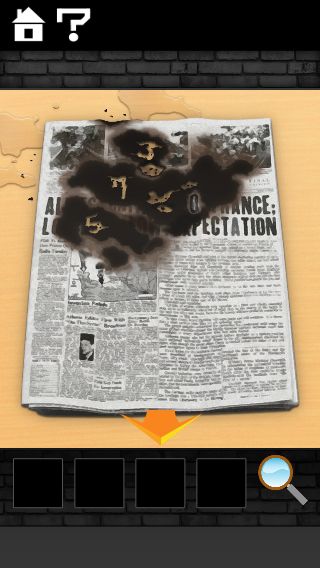 テーブルの上の火に「カップ」の水をかけて、新聞を拡大。