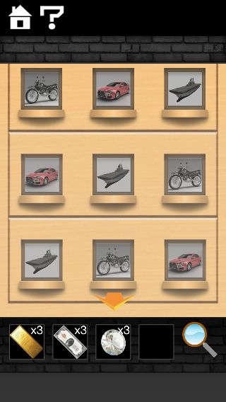 戦艦に「金塊」、車に「宝石」、バイクに「お札」をそれぞれ置いていく。
