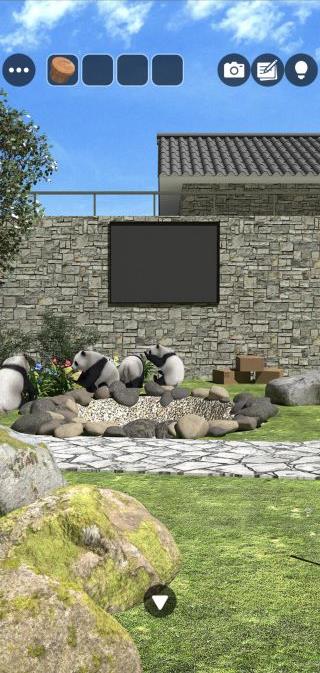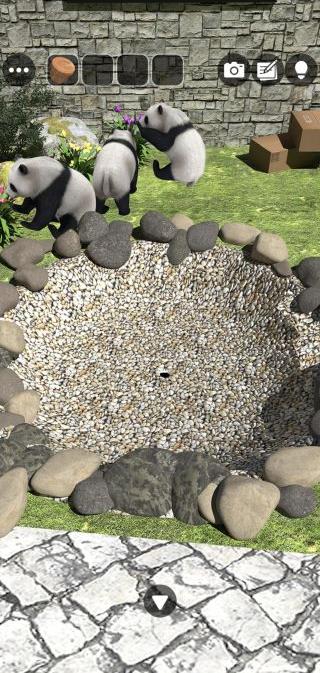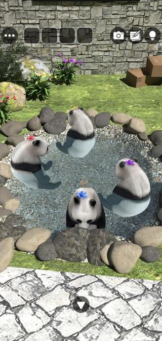 左の装置を拡大して、先ほどの池のパンダの位置『下、左、右下、上』に合わせる。