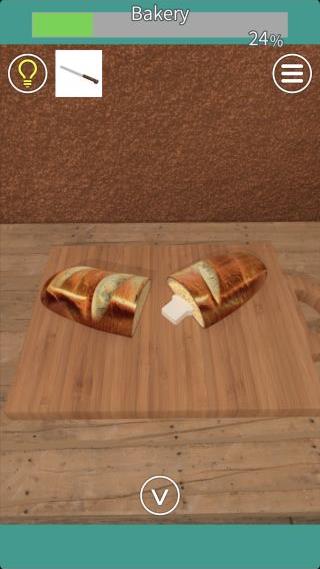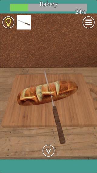 左のフランスパンを拡大して、「パンナイフ」を使う。