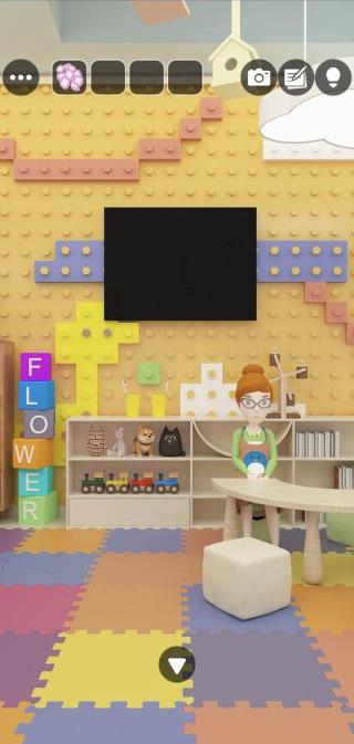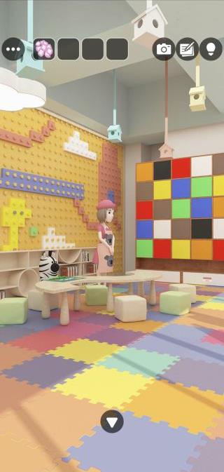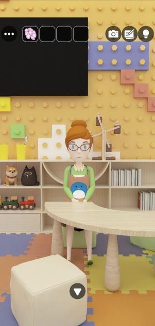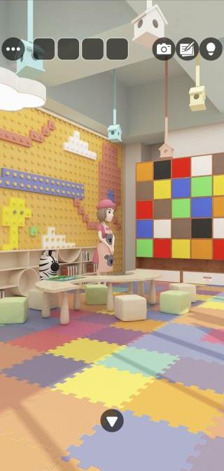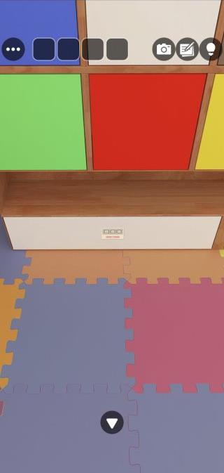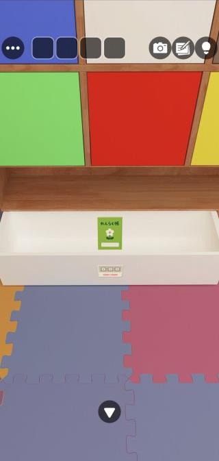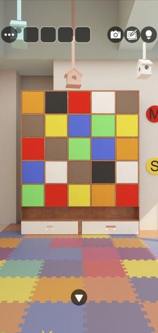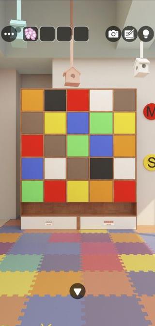 左奥の棚を拡大して、『オレンジ、黄、緑、黒、赤』の並びが左上から右下への斜めなのを確認。