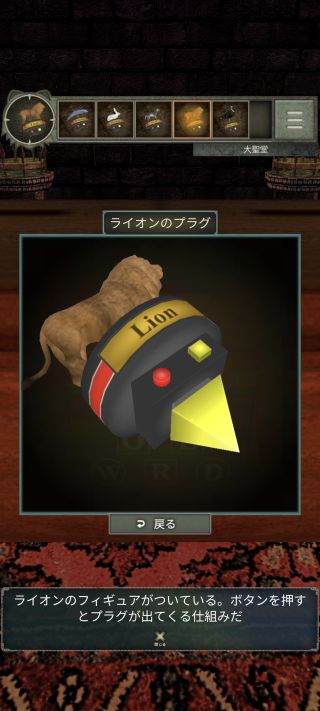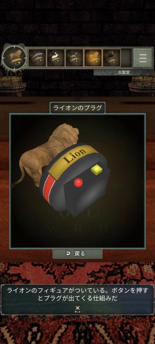 「ライオンのプラグ」を調べて、四角いボタンを押す。