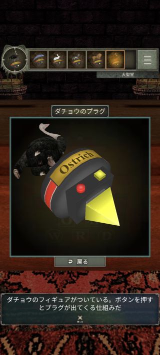 「ダチョウのプラグ」を調べて、四角いボタンを押す。