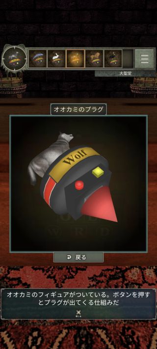 「オオカミのプラグ」を調べて、丸いボタンを押す。