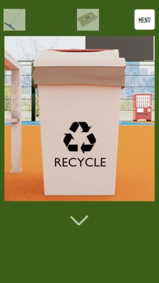 左の救急箱と、バスケットボールのコートにあるゴミ箱で『REC』の文字を消す。