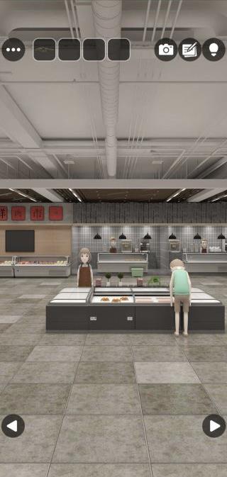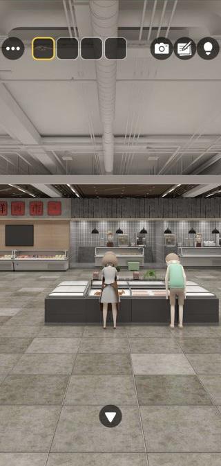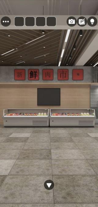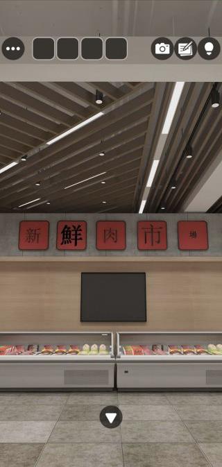 左奥の『新鮮肉市場』の文字の大きさ『中大中大小』を確認。