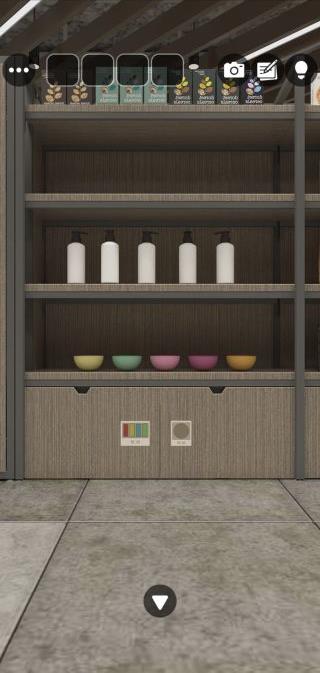下の器の色『黄、緑、ピンク、紫、オレンジ』を確認。