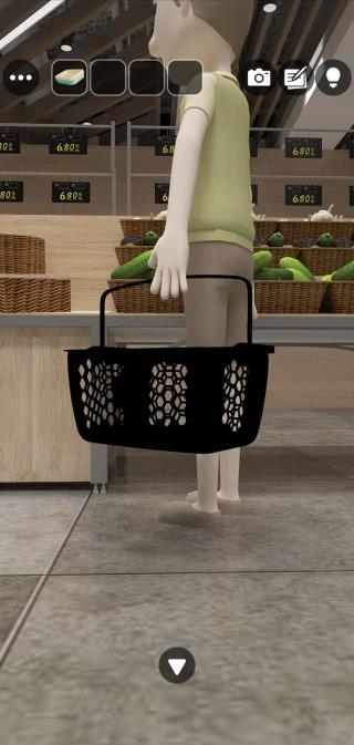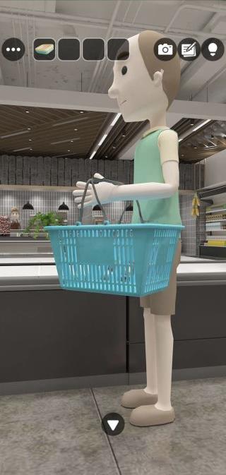 男性の青いカゴを拡大して、模様を確認。