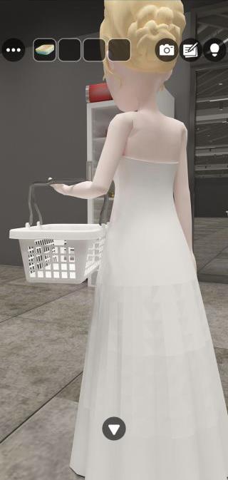 女性の白いカゴを拡大して、模様を確認。