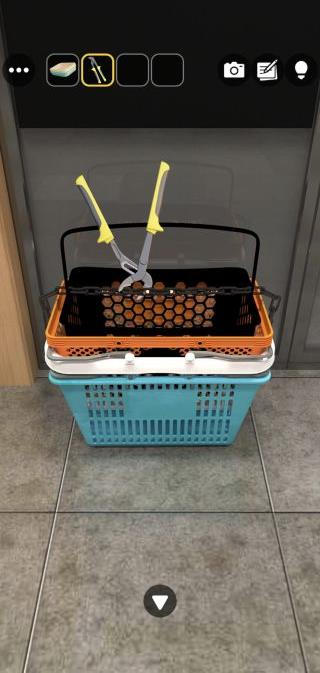 左の装置を拡大して、4色のカゴの模様に合わせる。